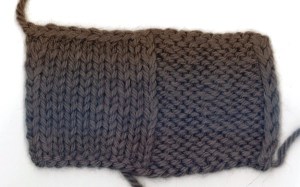 Per i meno esperti, la maglia rasata rovescia talvolta appare cone un’arcana magia o, quantomeno, come un ulteriore punto da imparare, ma in realtà è esattamente lo stesso punto. Maglia rasata e maglia rasata rovescia si ottengono entrambi alternando un ferro a dritto e un ferro a rovescio e sono essenzialmente l’uno il lato inverso dell’altro. Girando questo campione sull’altro lato vedremmo che i due lati sono essenzialmente identici. Quindi, quando impariamo a lavorare la maglia rasata di fatto impariamo a lavorare due punti: la maglia rasata e la maglia rasata rovescia.