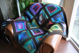 La tecnica log cabin è popolare negli Usa per creare piastrelle quadrate o rettangolari con cui comporre coperte, ricoprire cuscini o anche creare capie accessori più complessi. In un certo senso, la piastrella log cabin è l’equivalente del granny square dell’uncinetto: richiede solo tecniche semplicissime (avvio, maglia dritta e intreccio), permette di sfruttare gli avanzi di filato e può produrre effetti cromatici strabilianti. (Altri invece… Meh.)
