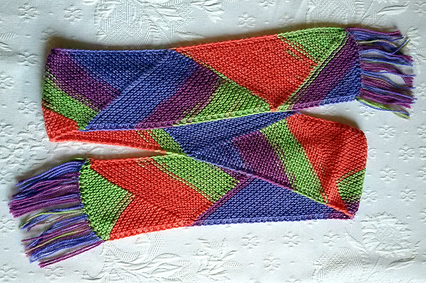 Domenica 13, presso il Giardino Blu di via Teodosio a Milano, dalle 15 in poi presenterò un breve workshop per la realizzazione di questa facile sciarpina a ferri accorciati, perfetta come regalo di Natale per un bimbo o come sottogiacca per una donna. Il metodo di lavorazione di questa sciarpa è totalmente adattabile a filati con pesi diversi e può produrre sciarpe di molte dimensioni diverse. Per il workshop sarà necessario portare con sé ferri (dritti o circolari) da 4,5 mm; il filato sarà disponibile, per i soli allievi iscritti in anticipo, in loco.